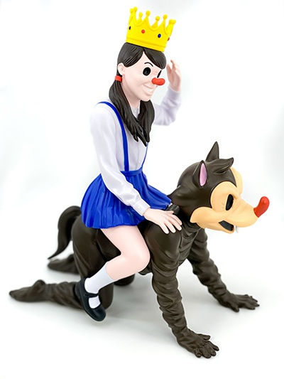 Vinyl toy in original box, 3 pieces: wolf, girl, and crown.