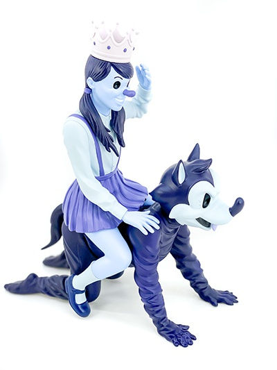 Vinyl toy, blue shades, in original box, 3 pieces: wolf, girl, and crown.
