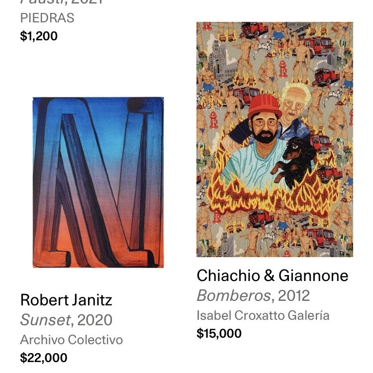 Isabel Croxatto Galería is pleased to share that our represented artists Chiachio & Giannone, Marino Balbuena and Víctor Castillo are featured in Artsy's Art Fairs Highlights.