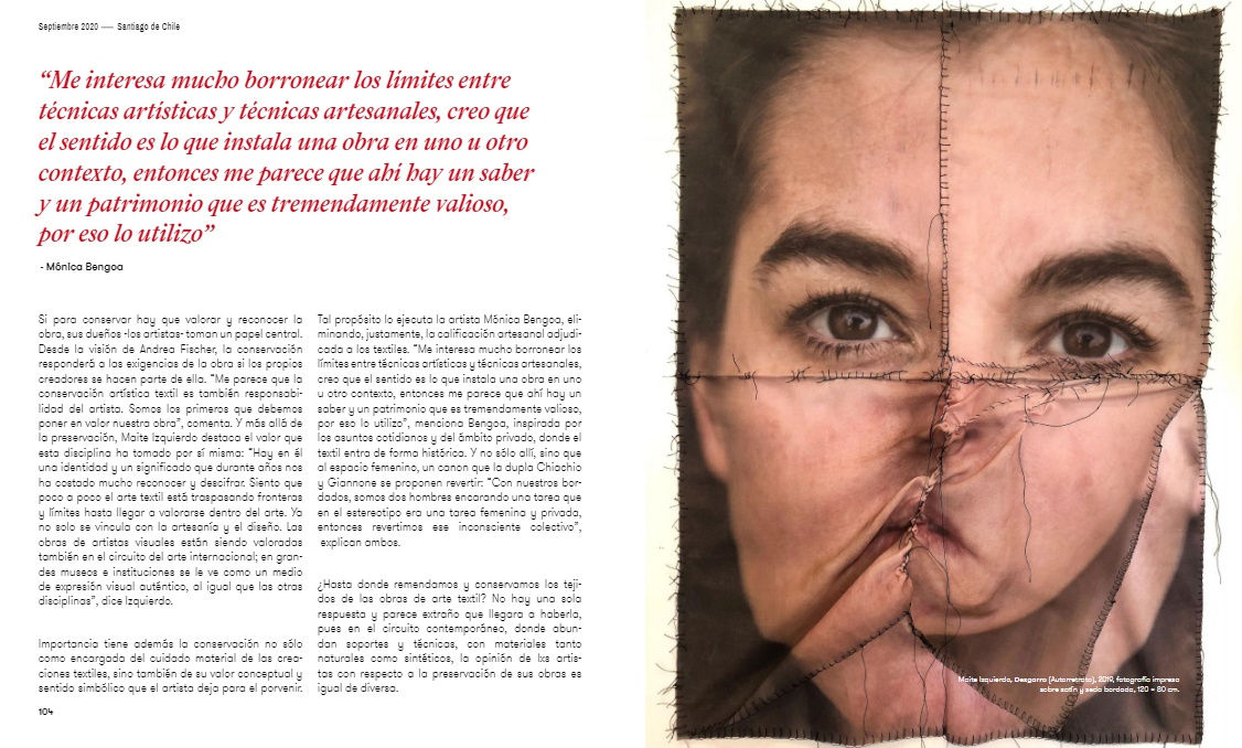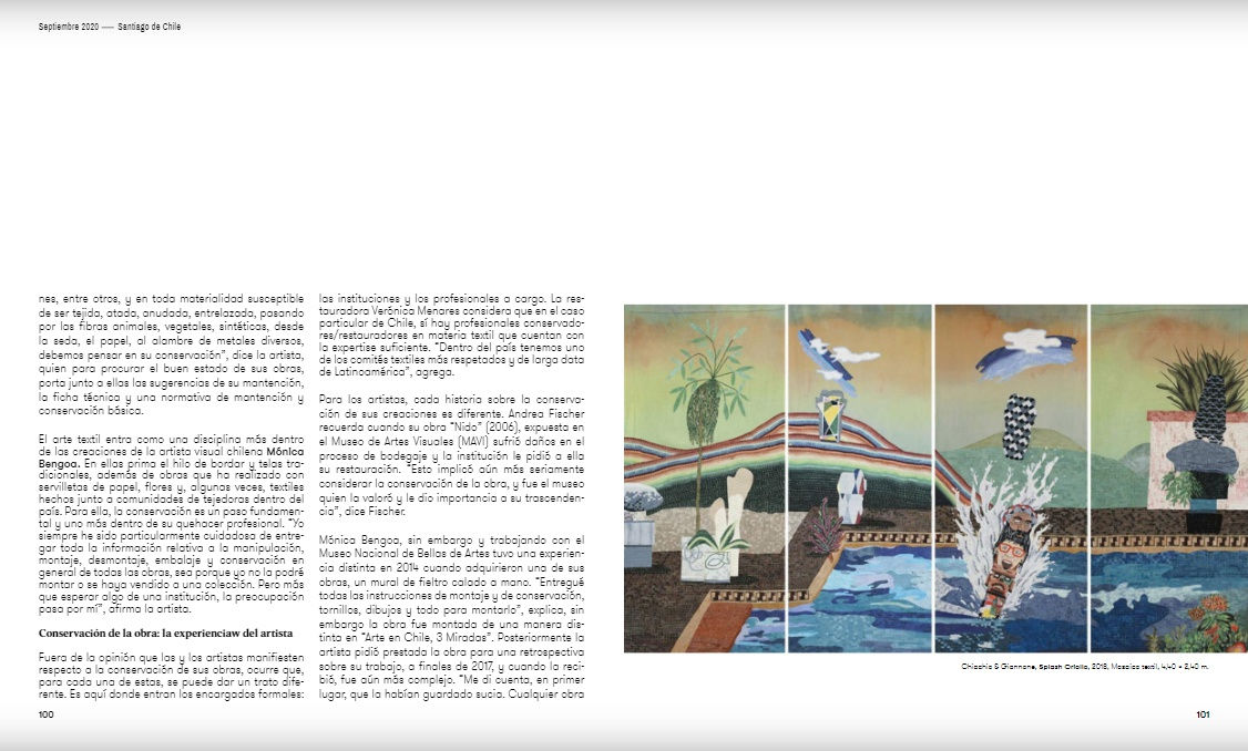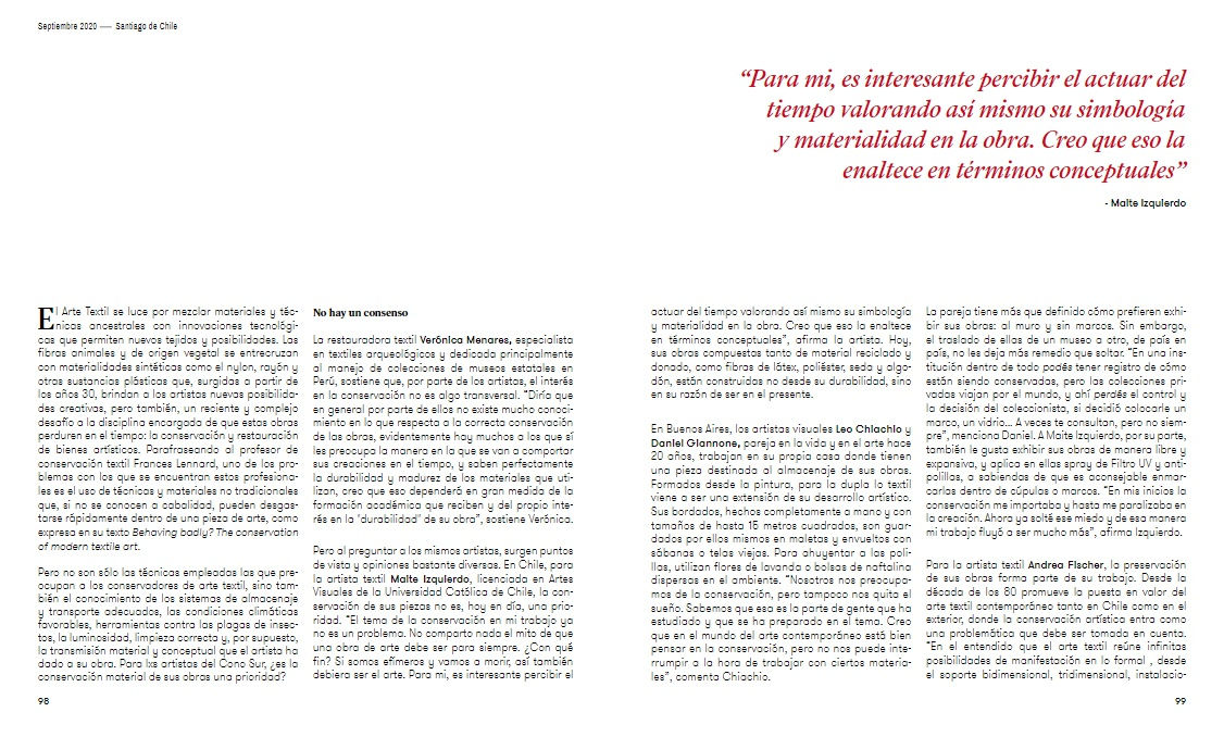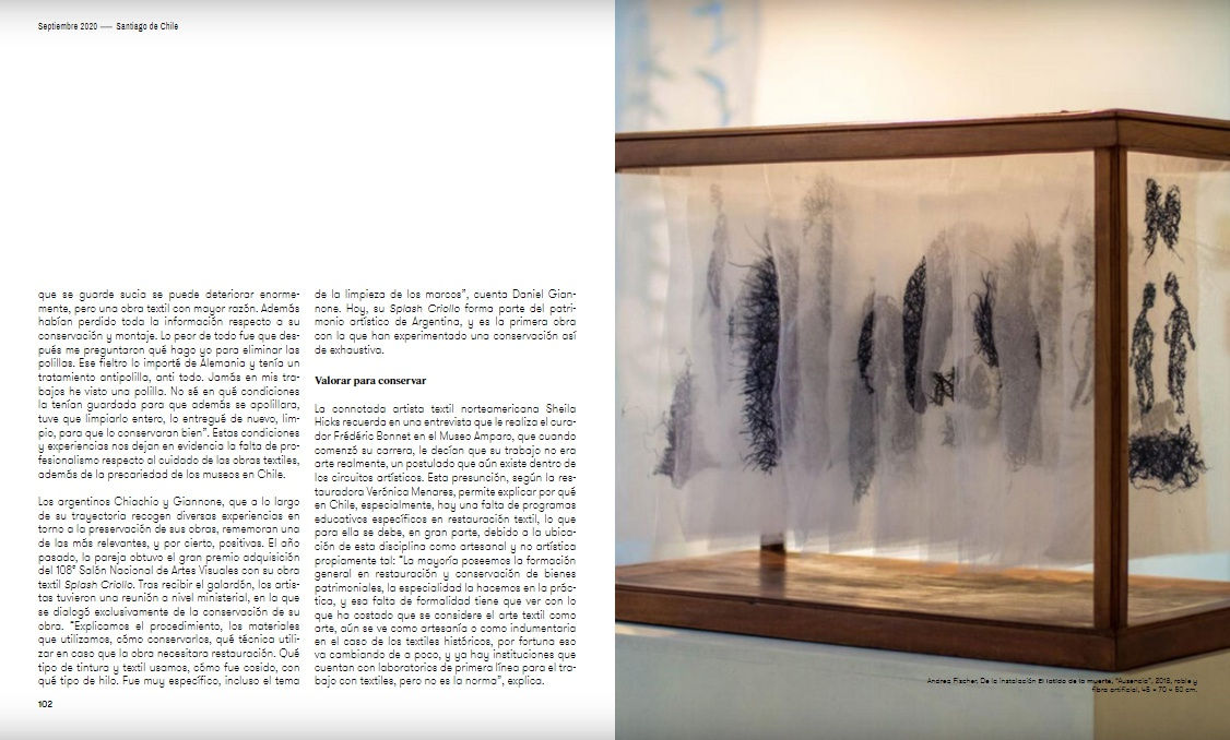 Chiachio & Giannone are featured in the article Hasta dónde reparar los tejidos about the preservation and storage of extile artworks, in the latest issue of Arte Al Límite's journal.