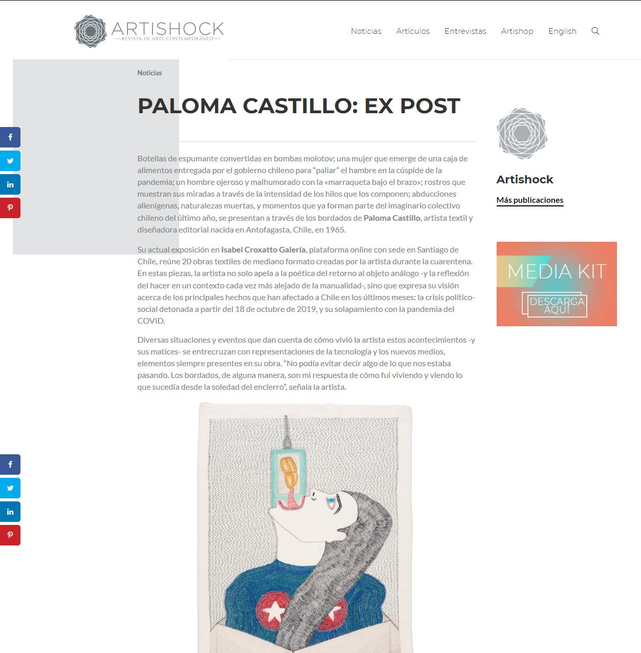 Ex Post, solo exhibition by textile artist Paloma Castillo, is featured in the influential Latin American art digital magazine Artishock.