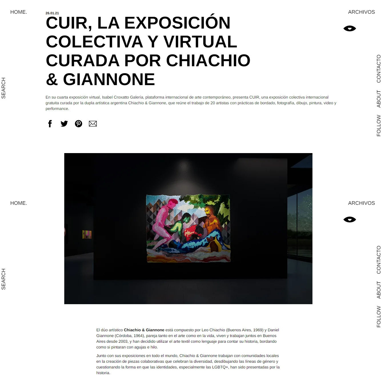 Chilean fashion and lifestyle web-magazine Galio features our latest virtual exhibition, CUIR, curated by Chiachio & Giannone and presented online by Isabel Croxatto Galería.