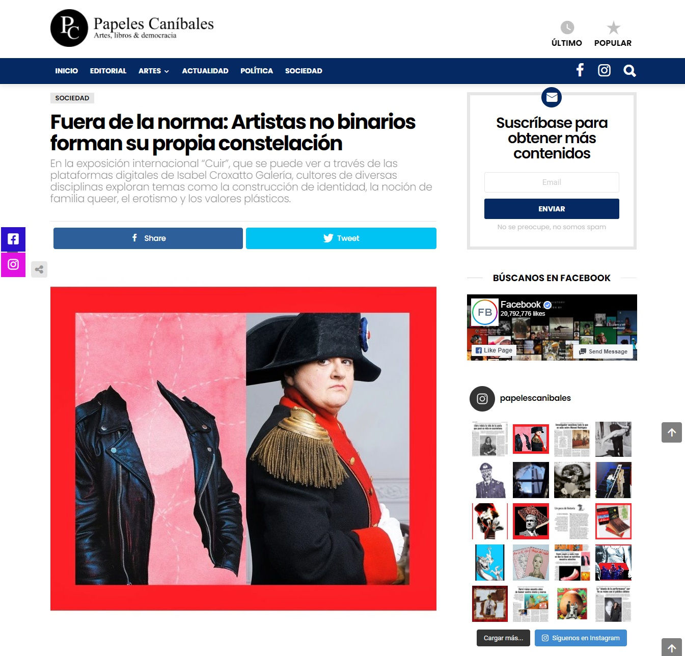 Chilean arts and culture website Papeles Caníbales features our latest virtual exhibition CUIR, Curated by Chiachio & Giannone, with a review delving into some of the artworks presented in the show.
